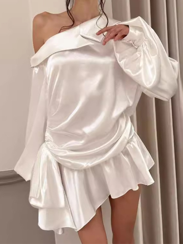 Minivestidos de gasa con volantes y escote barco y cintura ajustada