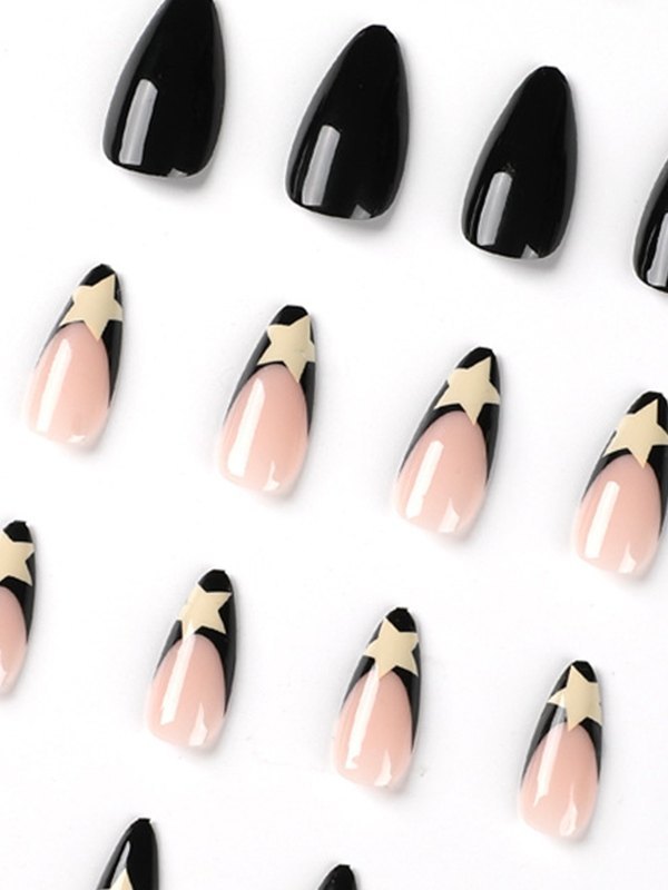 24 piezas de prensa de patrón de estrella en las uñas.