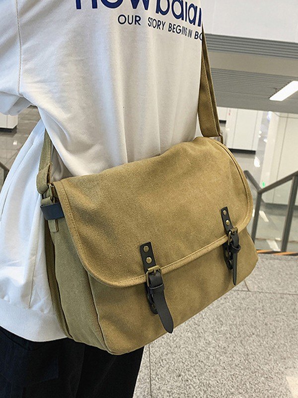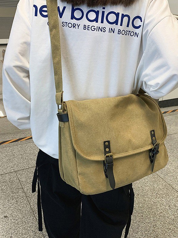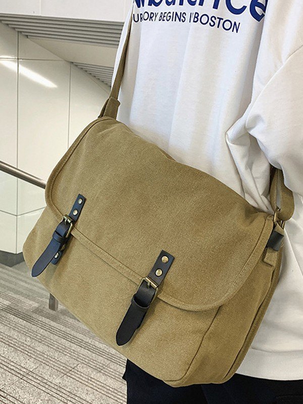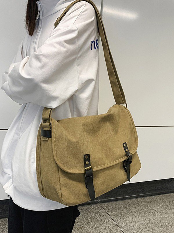 Bolso bandolera grande de lona con correa con hebilla