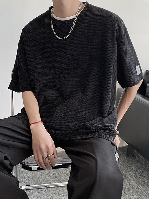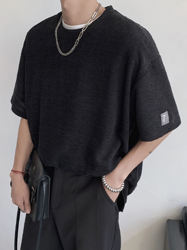 Camiseta de manga corta de media manga unicolor para hombre