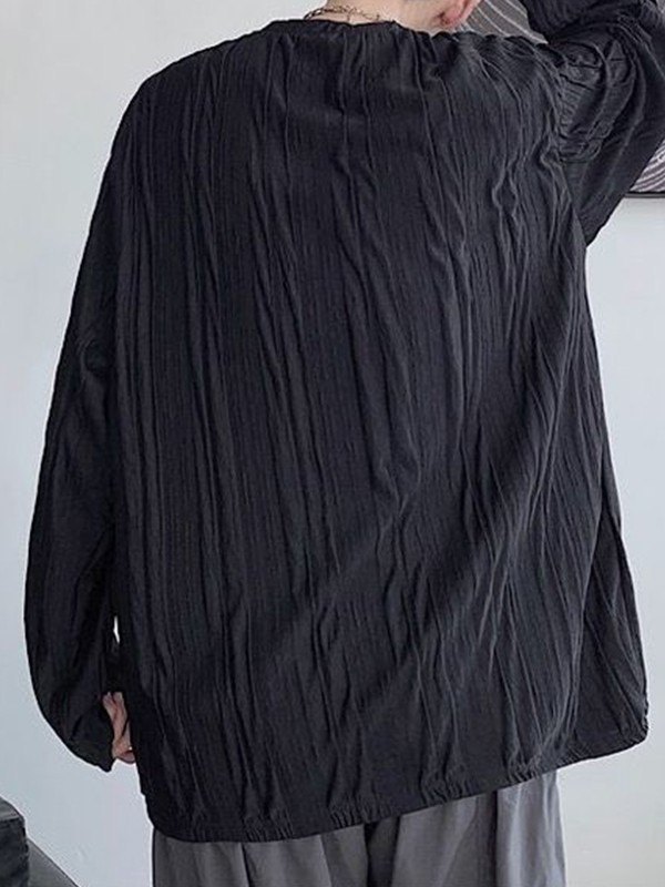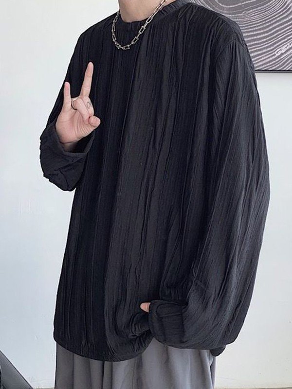 >Descripción: se actualizaron algunas camisetas versátiles de manga larga para atuendos interiores básicos. Esta camiseta para hombre tiene una silueta ajustada y un diseño de textura fruncida en todo el cuerpo.