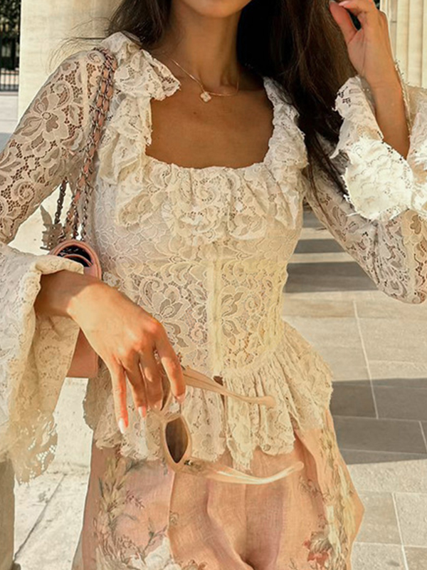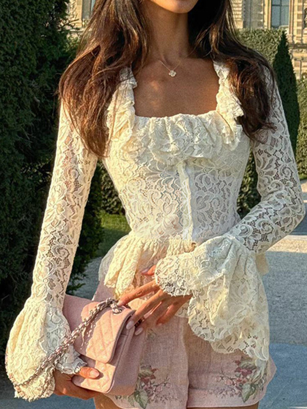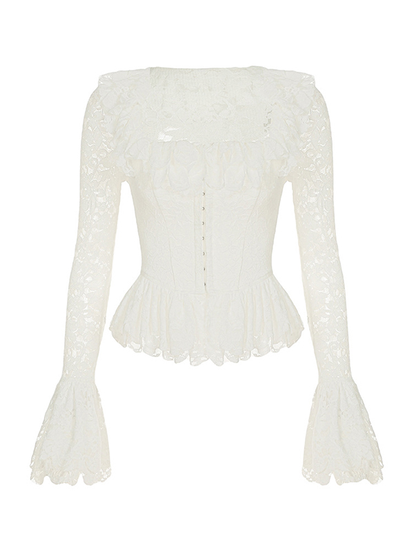 Camiseta de manga larga con encaje y mangas de pétalos con velcro