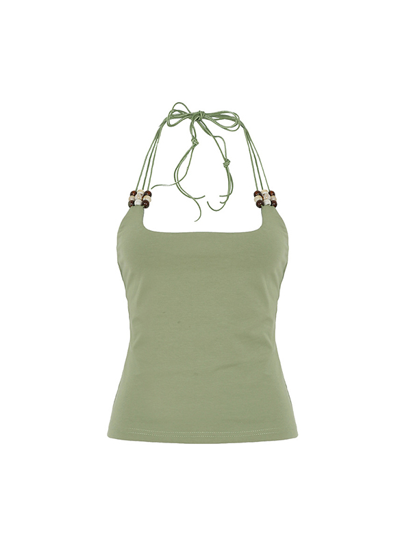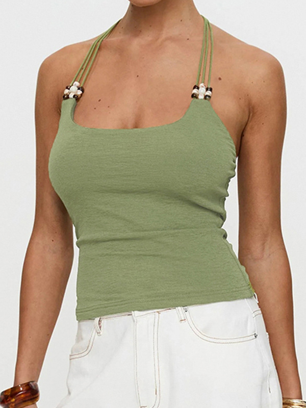 Chaleco estilo vintage con cuello halter y abalorios