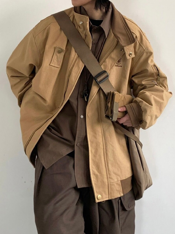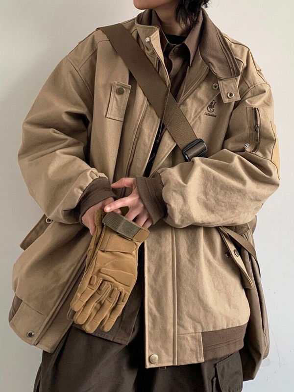 Sé el primero en valorar “Chaqueta con empalme de cuello con solapa y bordado vintage para hombre”