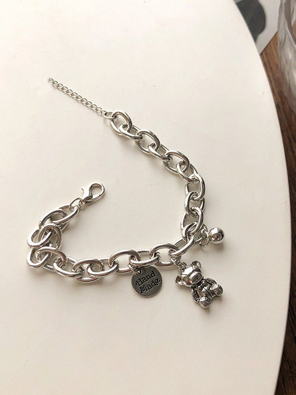 Pulsera de amistad con dije de oso de dibujos animados de cadena de eslabones