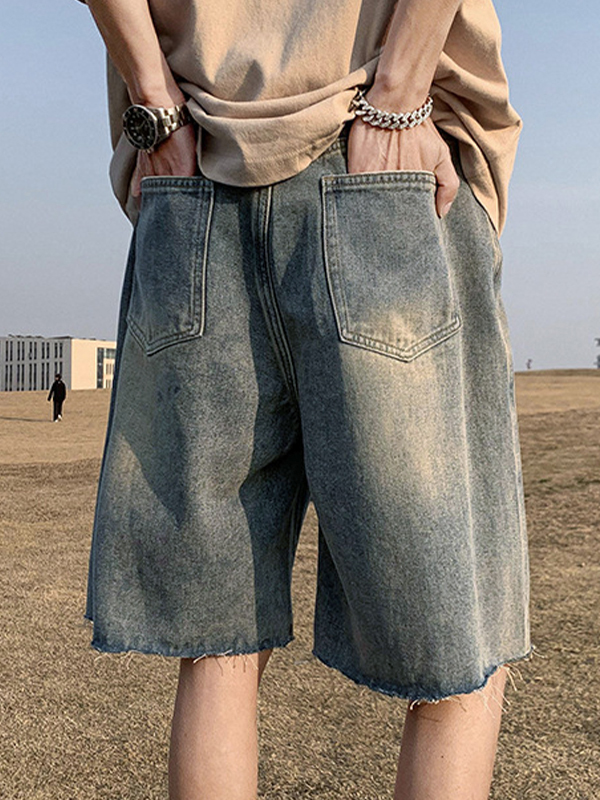 Shorts con cordón y dobladillo deshilachado lavado para hombre