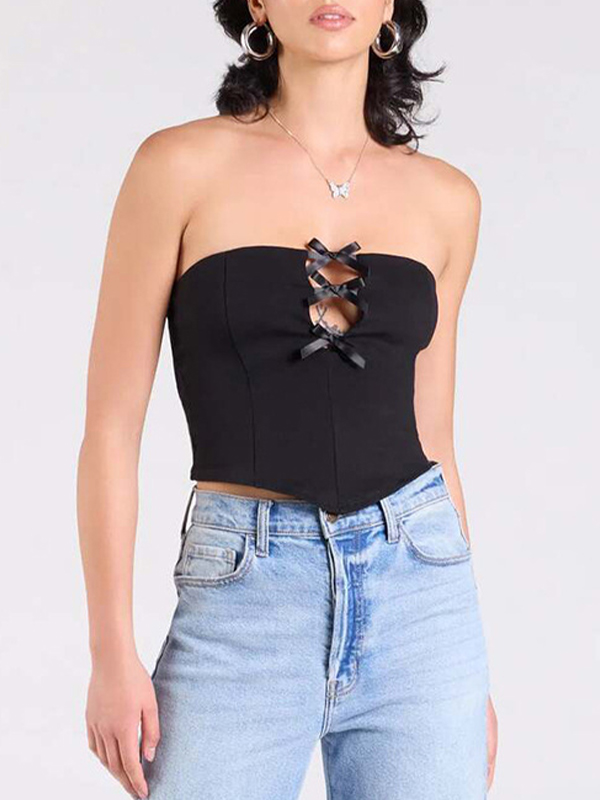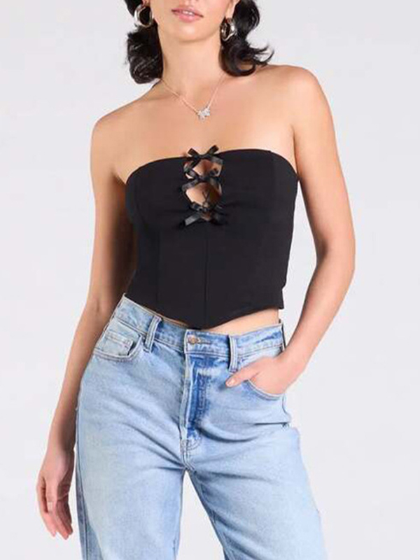 Top bandeau hueco con lazo en color liso