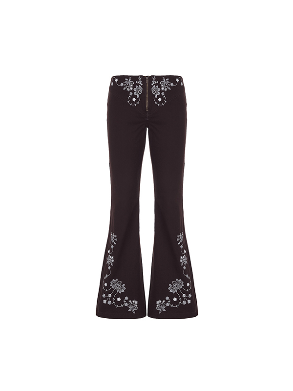 Vaqueros acampanados con diseño de solapa y bordado vintage