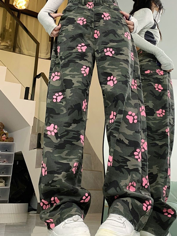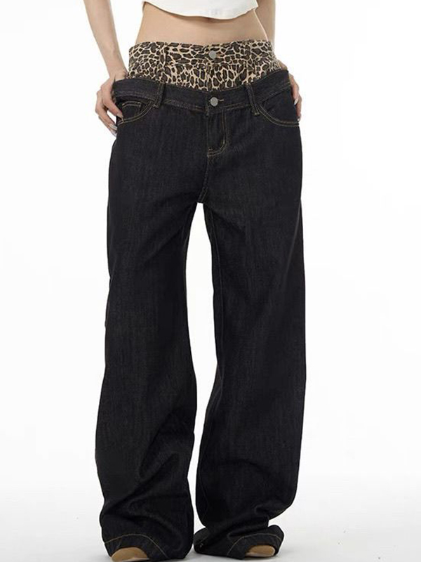 Vaqueros boyfriend con estampado de leopardo y diseño retro