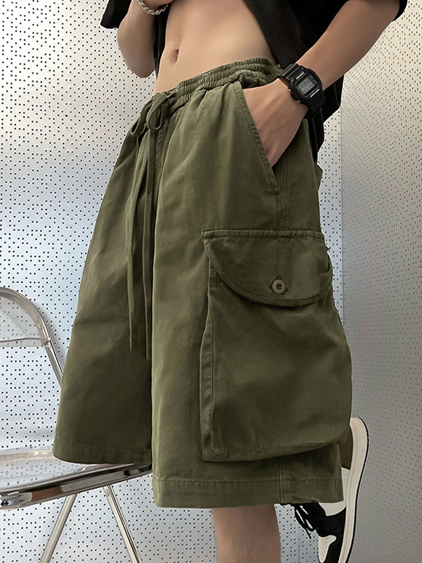 Pantalones cortos con bolsillos grandes, informales y sencillos para hombre